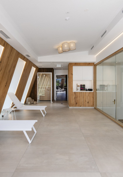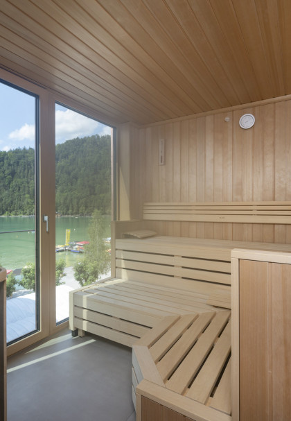 Infinity pool with lake view – Experience the feeling of becoming one with the water while taking in the stunning panoramic views of the surrounding mountains. Relax in our stylish Finnish sauna with lake view or in the steam bath and feel body and mind come to rest.