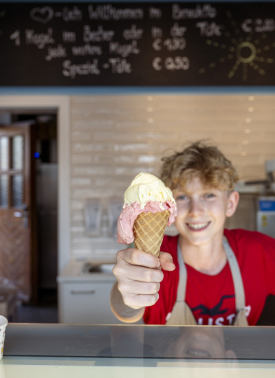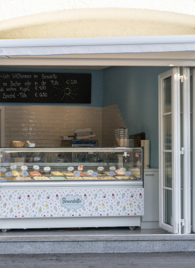 - Verkauf von hausgemachtem Eis in unserem "Benedetto", täglich von Mai bis September